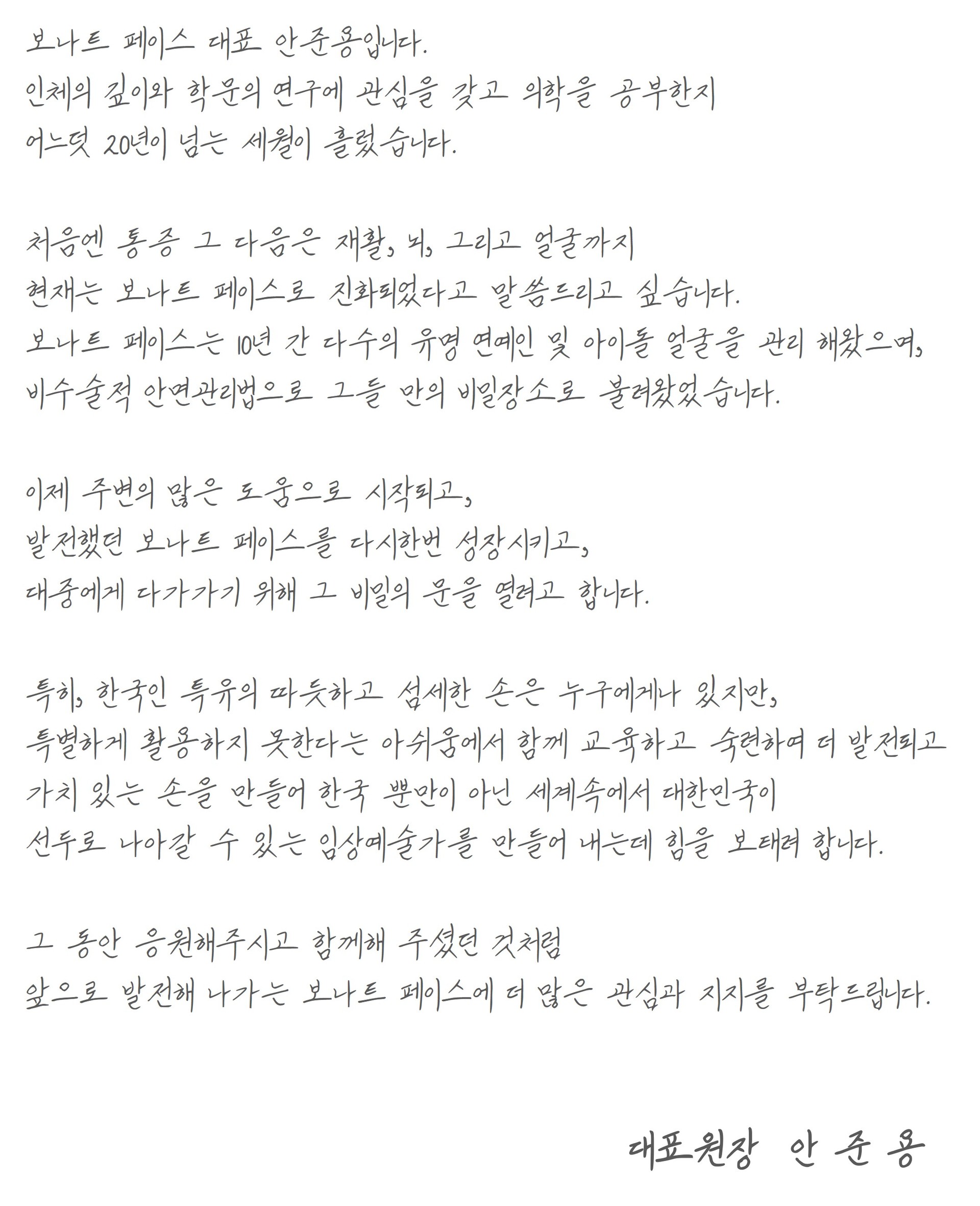 보나트페이스의 주 고객층은 배우, 케이팝 스타 고객층입니다.트렌드를 주도하는 K-STAR 들은 우리의 기술에 더 큰 발전과 보탬이 되어주며, 그 자체만으로도 보나트페이스가 증명 되었음을 보여줍니다.